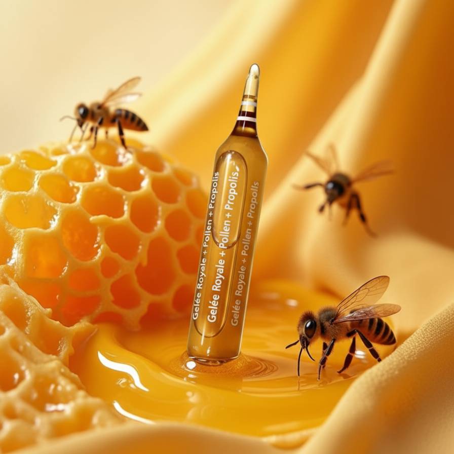 | Royal Jelly (5%) | Bee secretion | Nutrient-dense elixir | Boosts vitality, balance, and cellular renewal |