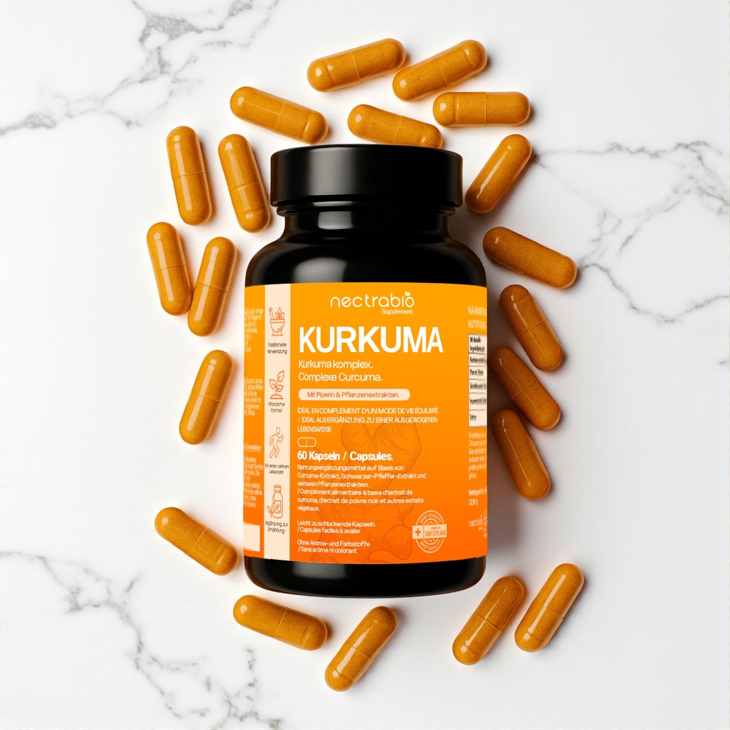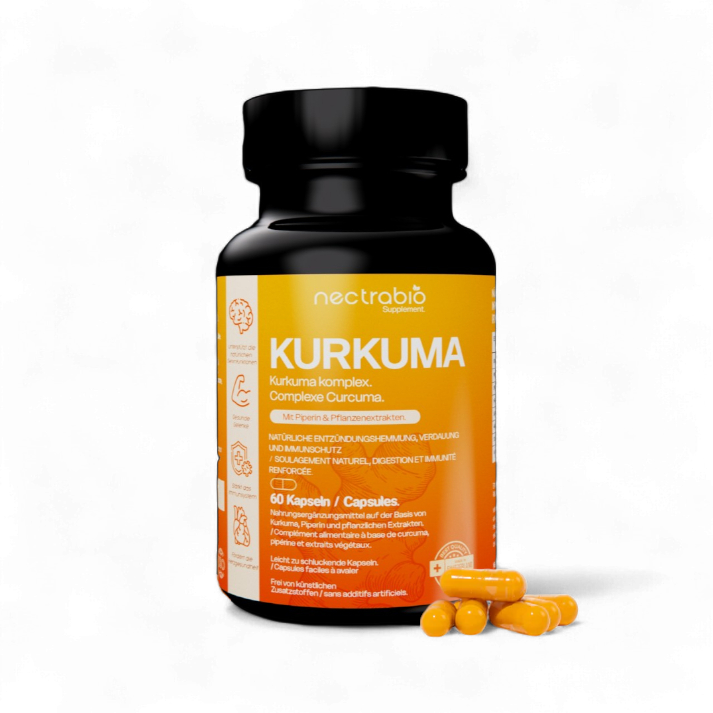 Nectrabio Kurkuma combines highly concentrated curcuma extract with piperine for maximum absorption and effectiveness. It helps relieve joint stiffness, supports metabolism, strengthens the immune system, promotes digestion, and boosts vitality — noticeably faster than conventional turmeric supplements.